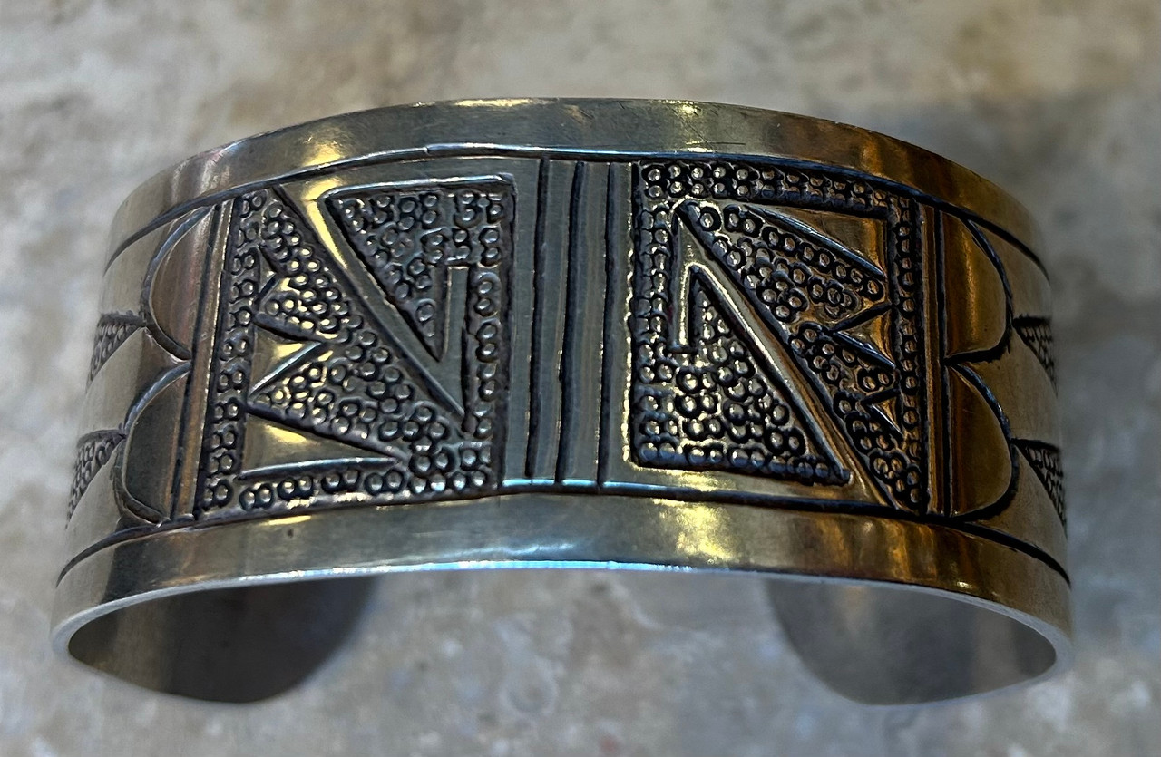 this lovely one of a kind small size wide cuff bracelet 6 1/2.