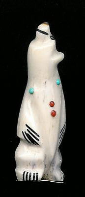 SOLD Claudia Peina is the artist of this Zuni bear fetish carved of antler. This measures 2 1/8"H x 1/2"W x 5/8"D.